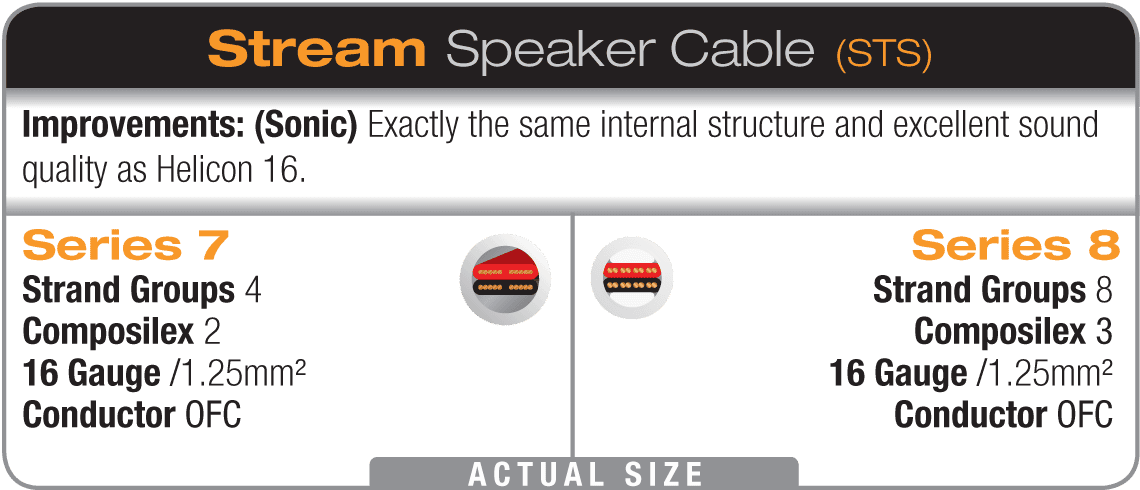 Là dây loa DNA Helix giá cả phải chăng nhất, Stream 8 cung cấp âm thanh rõ hơn và mạnh hơn các loại cáp khác có kích thước gấp đôi. Dây loa này cung cấp chất lượng âm thanh hàng đầu như dây loa Helicon 16 OFC trong một dây cáp tròn bền chắc, rất tuyệt vời để lắp đặt.
