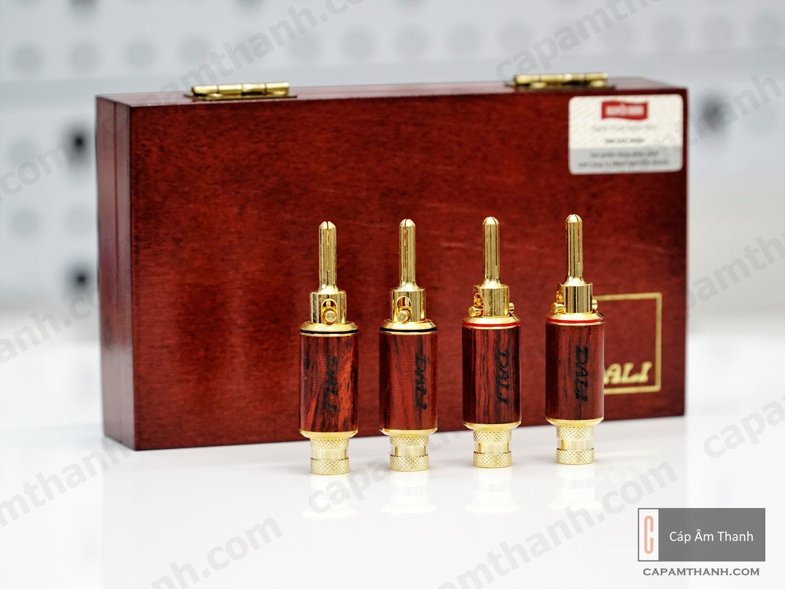 Bắp chuối hiệu suất cao với tiếp điểm mạ vàng và vỏ làm từ gỗ đặc biệt. Sử dụng vít hãm dây cho phép lắp dây loa lõi đặc có tiết diện lõi lên tới 7mm2 hoặc dây loa lõi bện lên tới 15mm2